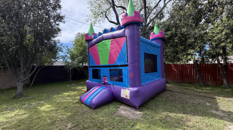 Step into a world of enchantment with our 13x13 Dream Castle bounce house! Delight in the magic of imagination as you bounce and play in this charming inflatable palace. Perfect for princess-themed parties, fairy tale events, and birthday celebrations, the Dream Castle welcomes guests with its whimsical design and a palette of purples, baby blue, and pink. With its vibrant yet dreamy hues and captivating accents, it creates a magical atmosphere that captivates children and adults alike. Whether you're hosting a royal ball or a magical adventure, the Dream Castle bounce house promises hours of laughter and joy for all. Don't let your event be without its fairy tale ending – reserve the 13x13 Dream Castle today and let the enchantment begin!