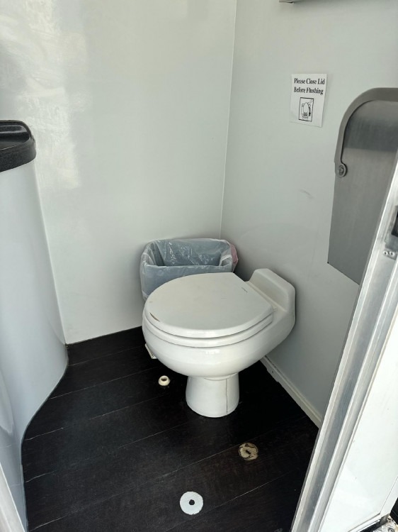 Upgrade your event with the utmost convenience and comfort provided by our deluxe 2-stall bathroom trailer rental. Perfect for weddings, festivals, corporate gatherings, and outdoor events of all kinds, our portable restroom solution offers a luxurious experience for your guests. Featuring two spacious stalls, each equipped with modern amenities including flushing toilets, sinks with running water, and vanity mirrors, our bathroom trailer ensures a clean and comfortable environment throughout your event. With its sleek design and premium features, this portable restroom option elevates the standard of convenience for any occasion. Ensure your guests feel pampered and catered to by renting our 2-stall bathroom trailer today.