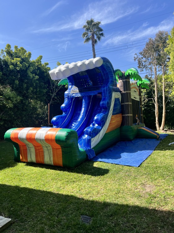 Imagine the ultimate adventure packed into 27 feet of vibrant, tropical fun. The 27ft Tropical Wave Combo is a giant inflatable wonderland, where towering palm trees and ocean hues set the scene for endless excitement. Combining the thrill of a bounce house with exhilarating slides and water features, this rental promises non-stop action and a dose of paradise for any event. Get ready to jump, slide, and splash through a tropical escape that feels like a mini-vacation right in your backyard!