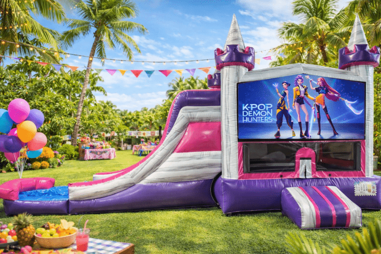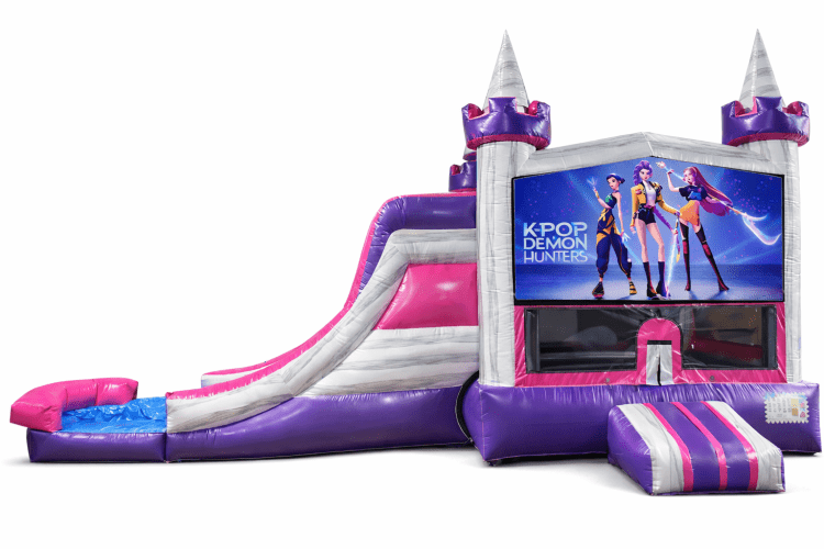 Bring high-energy fun to your next event with our K-Pop inspired bounce house and slide combo! Designed with bold colors, sleek pop-star style graphics, and an exciting concert-like vibe, this inflatable is perfect for kids who love music, dancing, and action-packed play. It features a spacious jumping area, an attached slide for extra thrills, and mesh siding for safety and airflow, making it ideal for birthdays, school events, and themed parties. Eye-catching and fun for all ages, this unit is sure to be the highlight of any celebration while keeping kids entertained for hours!